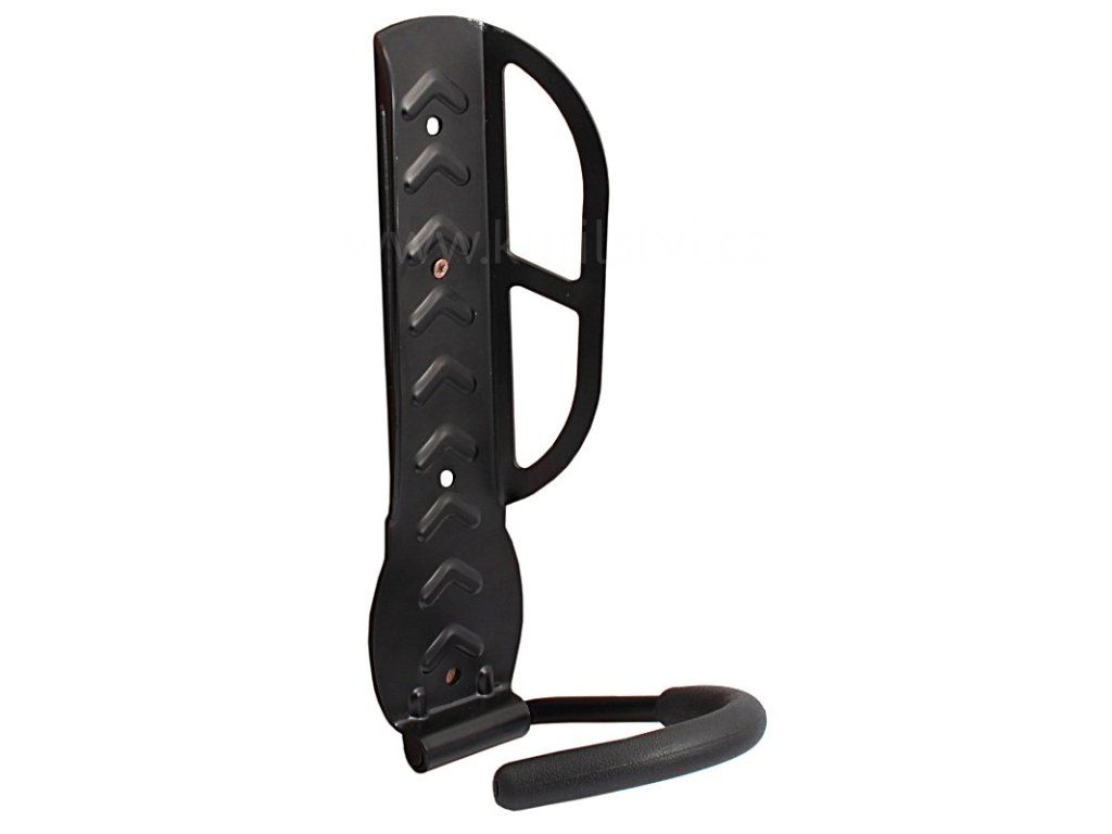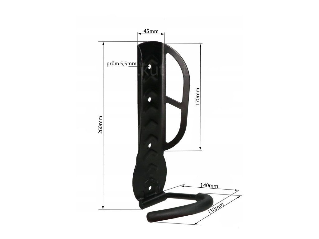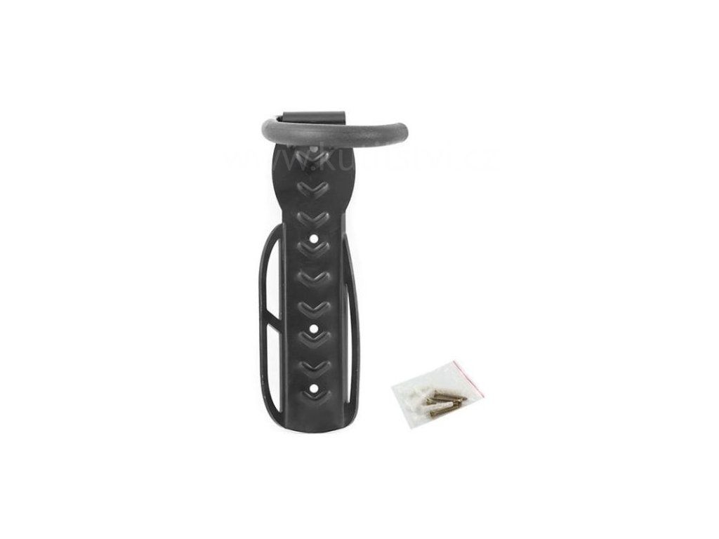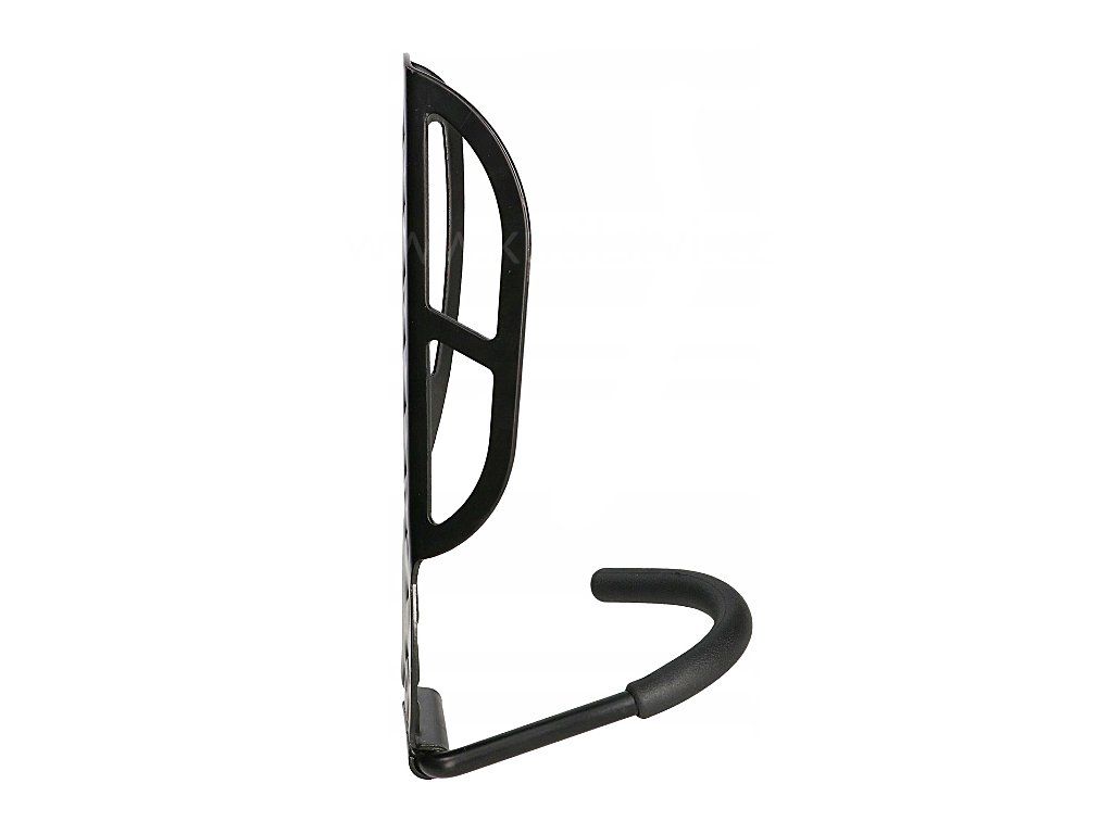 Držák pro vertikální uložení kola za přední kolo – do průměru 75mm.Univerzální nástěnný držák na kola – hodí se pro většinu typů kol do 30 kg.Hák se silikonovým potahem – chrání ráfek před poškrábáním a sklouznutím.Pevná instalace pomocí 4 šroubů – bezpečné uchycení i při častém zavěšování/sundávání.Práškově lakovaný nátěr – odolný vůči každodennímu používání.Sada obsahuje montážní materiál – hmoždinky a šrouby pro rychlou instalaci.Hmotnost závěsu: 0,55 kg