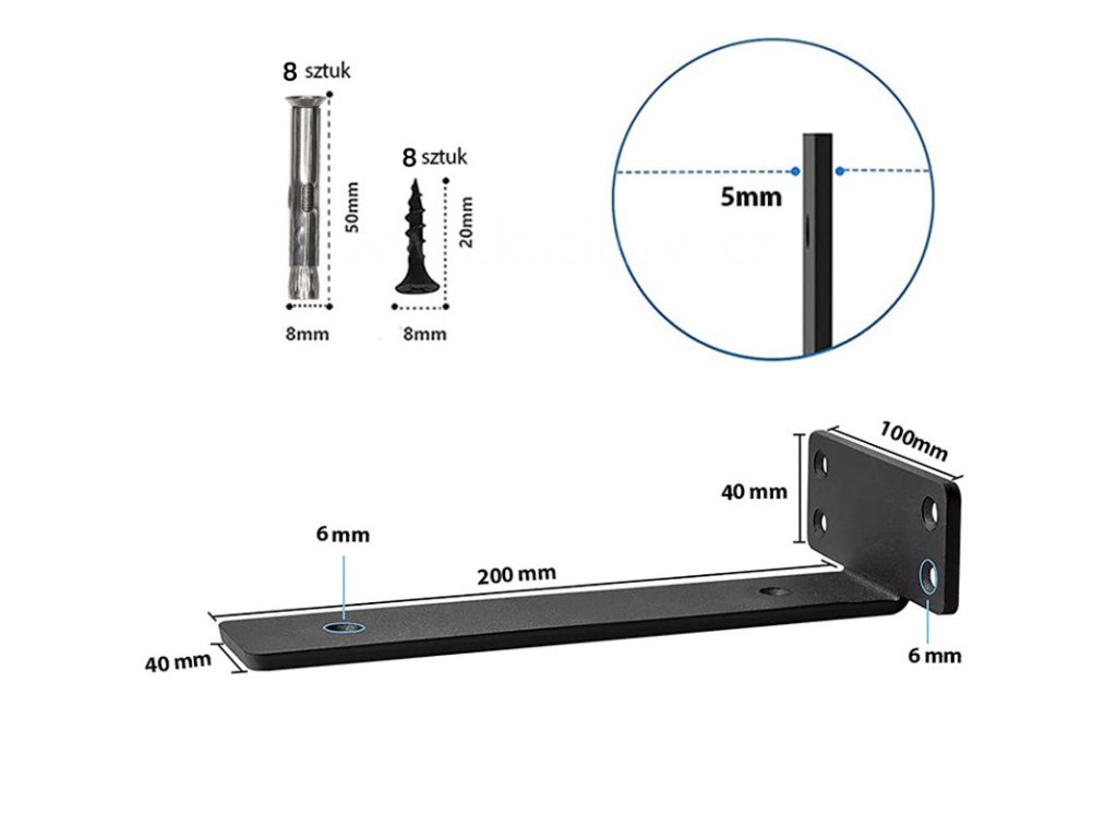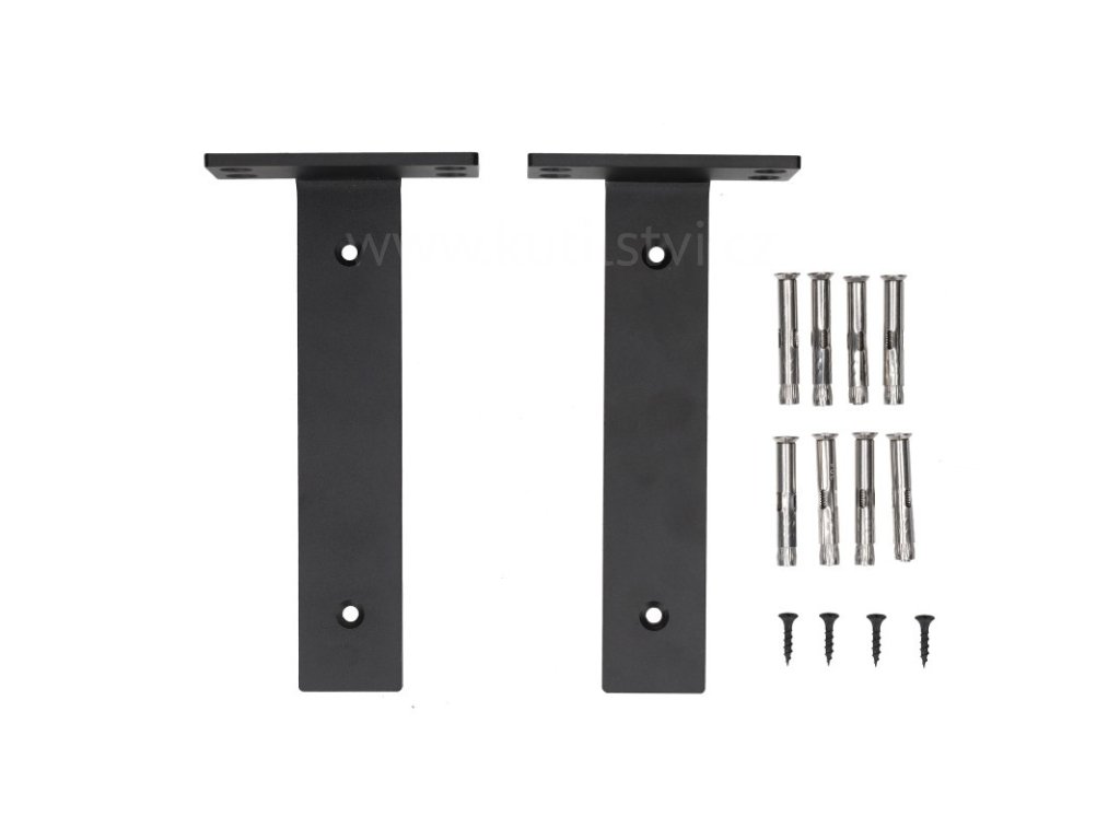 Uchycení police univerzální sada 4 konzoly 250 x 150mm. Čtyři konzoly z masivní pásoviny 40x5mm, určno pro police o šířce minimálně 250mm. Výrobek je lakován práškovou...