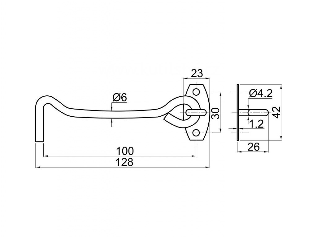 Hák kovový rozpěrný. Barva černý matný lak. Celková délka 12,8 cm.
