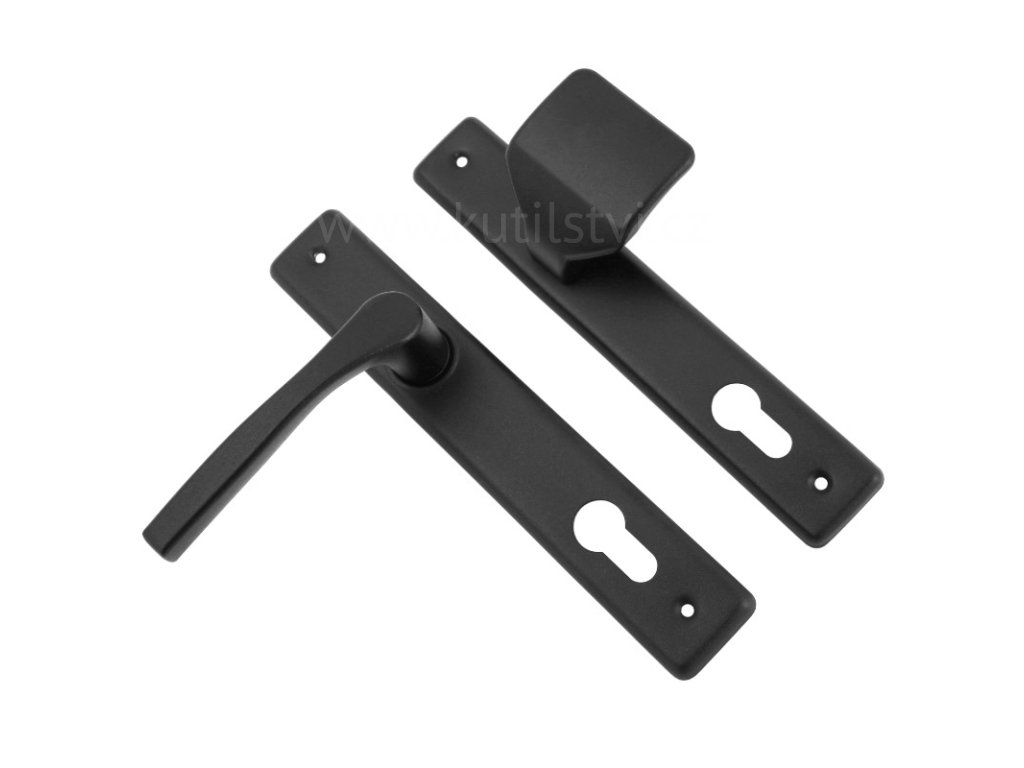 Rozměry:- šířka štítu kliky: 36 mm (jekl 40x40mm)- kompatibilita zámku: rozteč 90 mm (otevírání cylindrického zámku)Vlastnosti:- Sada madla + jednostranné kliky pro brány a branky.- Klika na vnitřní straně pro uvolnění zámku; pevná úchytka na opačné straně.- Lité madlo pro stabilní úchop a odolnost.- Povrchová úprava: matně černý práškový lak, texturovaný; povětrnostně odolný nátěr.- Kompatibilní se zámky s roztečí 90 mm a otvorem pro cylindrickou vložku.- Montážní šrouby součástí balení pro rychlou a bezpečnou instalaci.