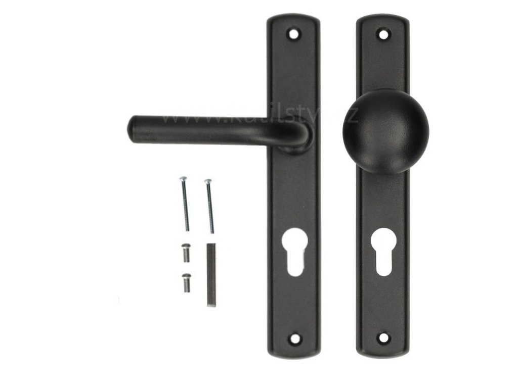 Rozměry:- Šířka štítu kliky: 38 mm (jekl 40mm)- Průměr kliky (klika, kulatý profil): 20 mm- Rozteč kliky - cylindrická vložka: 90 mmVlastnosti:- Pevná rukojeť (neotočná) na jedné straně a LEVÁ klika na druhé straně.- Mechanismus návratu kliky pro plynulý chod.- Ocelová konstrukce, práškově lakovaná černou barvou.- Určeno pro zámky s roztečí 90 mm pro cylindrické vložky.- Kompatibilní s interkomovými a elektrickými závorovými systémy, stejně jako s rolovacími zámky.- Směr otáčení: levý.- Hmotnost 0,5kg