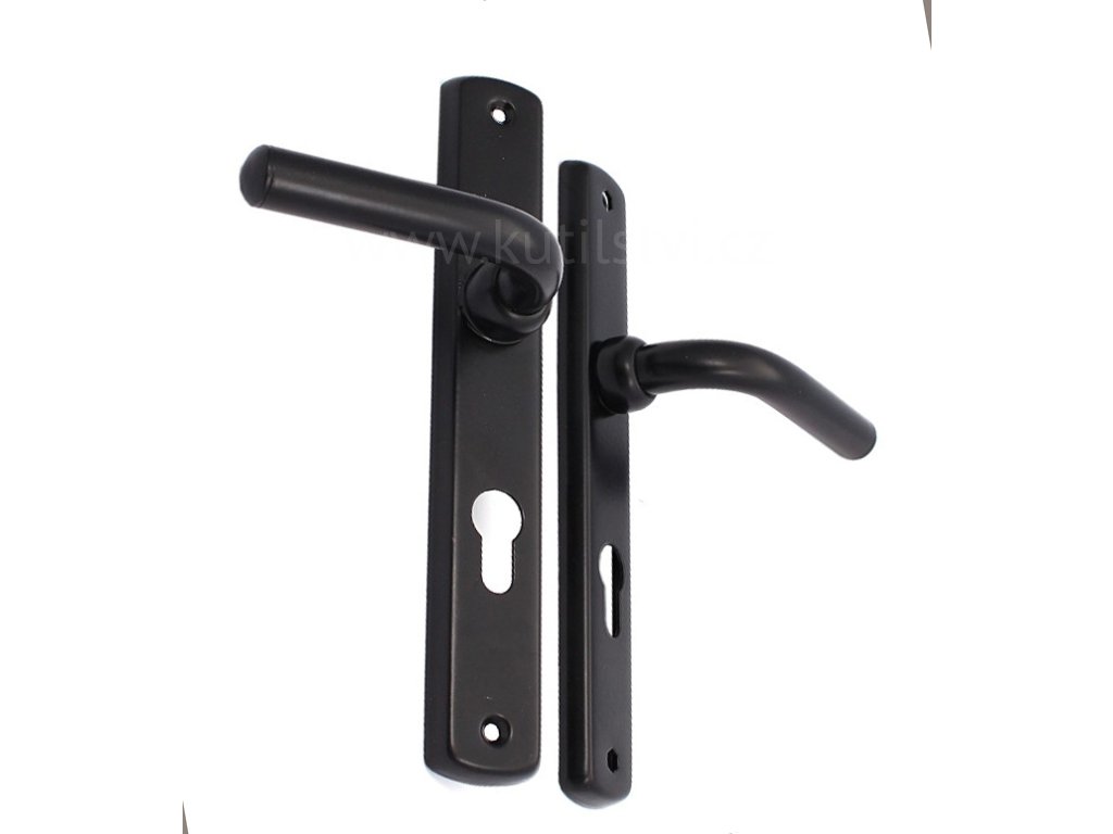 Rozměry:- Šířka štítu kliky: 38 mm (jekl 40mm)- Průměr kliky (klika, kulatý profil): 20 mm- Rozteč kliky - cylindrická vložka: 90 mmVlastnosti:- Pevná rukojeť (neotočná) na jedné straně a pravá klika na druhé straně.- Mechanismus návratu kliky pro plynulý chod.- Ocelová konstrukce, práškově lakovaná černou barvou.- Dlouhé, úzké destičky určené pro úzké profily branek a branek.- Určeno pro zámky s roztečí 90 mm pro cylindrické vložky.- Kompatibilní s interkomovými a elektrickými závorovými systémy, stejně jako s rolovacími zámky.- Hmotnost 0,53kg