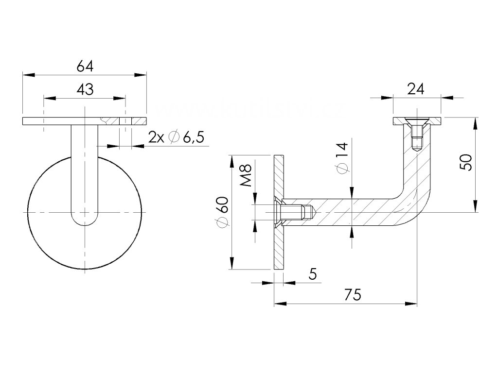 Nerezový držák zábradlí, tyč se závitem M8