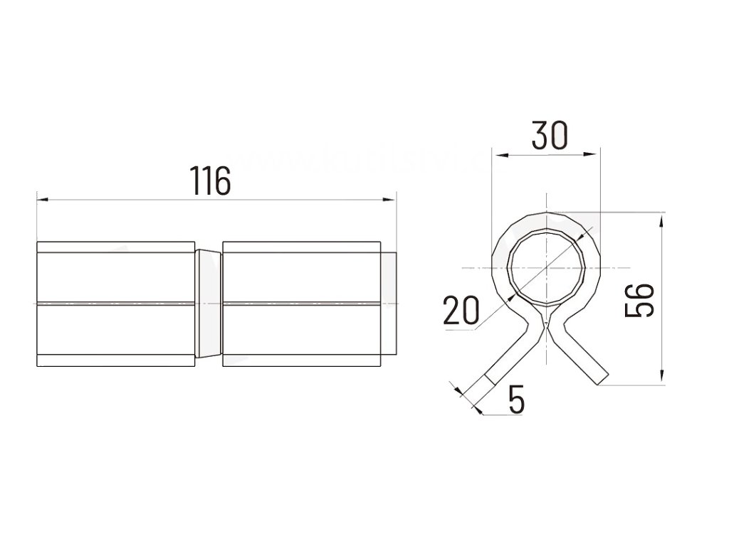 Robustní pant s otevřenými křídly varianty s průměrem čepu 12, 16, 20 a 27mm, pozink