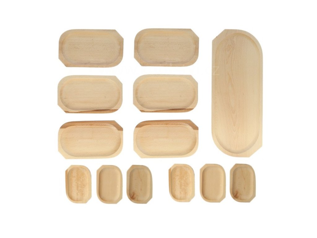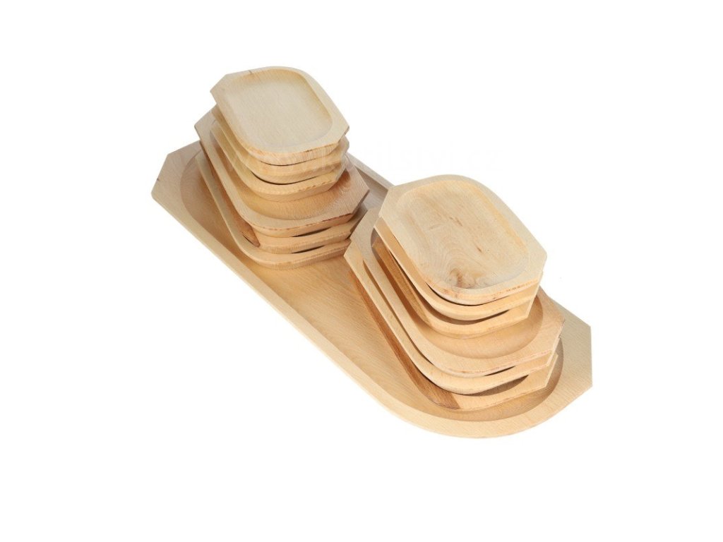 Sada dřevěných grilovacích talířů. Sada obsahuje 1 tác a 12 talířů, z toho 6 velkých a 6 malých. Výrobek je vyroben z vysoce kvalitního dřeva, je nejen estetický, ale i ekologický, což z něj dělá vynikající volbu pro lidi, kterým záleží na životním prostředí. Nádobí je odolné vůči vysokým teplotám, což je obzvláště důležité při grilování.