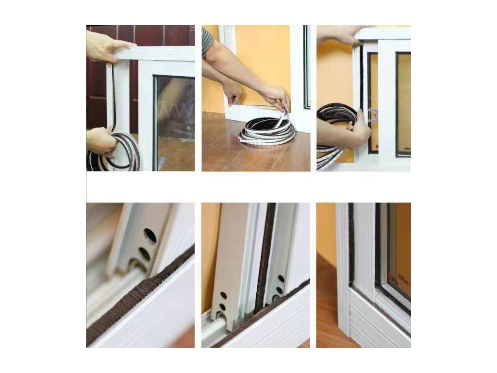 Samolepicí těsnící kartáčky 3M pro posuvné dveře a okna hnědé a šedé