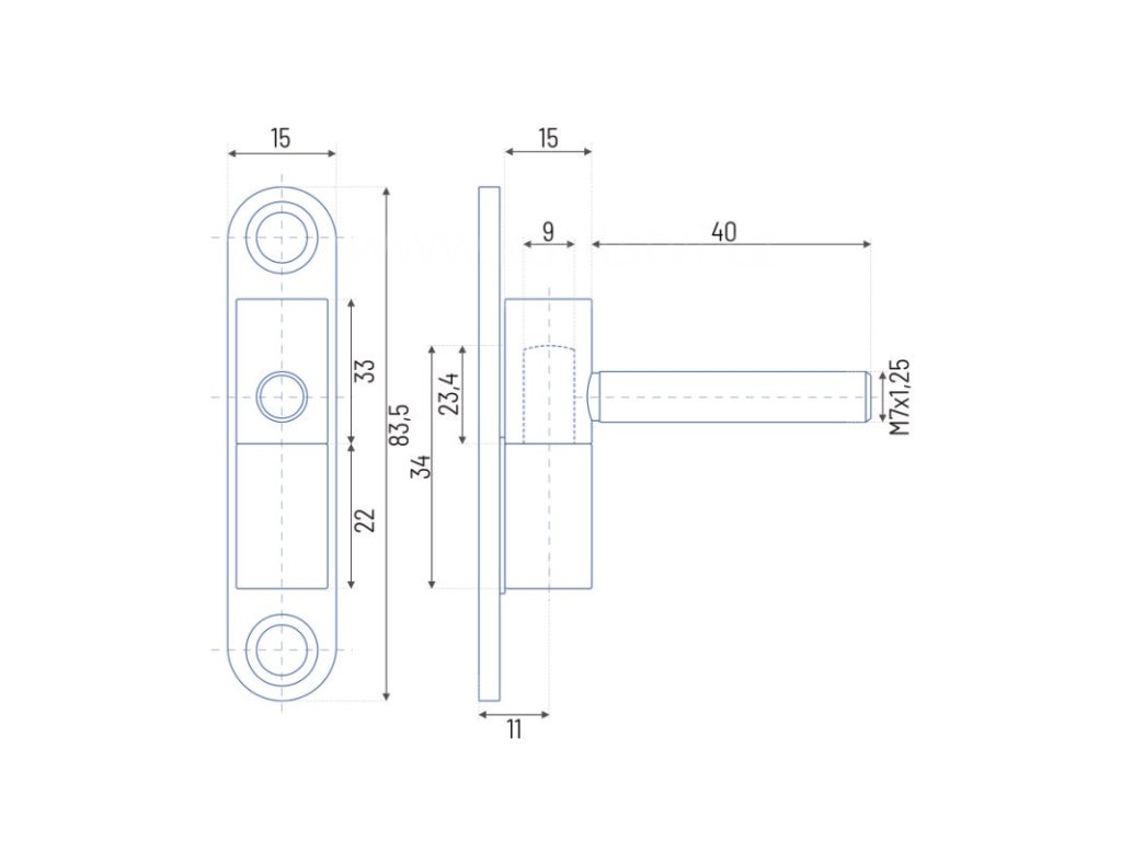 Šroubovací dveřní pant- Vnější průměr: 15 mm- Celková délka pantu: 83 mm- Závit: M7x1,25- Délka závitové části: 40 mm- Délka montážní desky: 50 mm- Dvoudílná konstrukce: část přišroubovaná (s deskou) k rámu a část přišroubovaná do křídla dveří- Způsob montáže: přišroubovaná, není nutné hluboké frézování do dřeva- Určené použití: pro dřevo; dřevěné dveře a okna, také s polodrážkou- Nosnost: max. 40 kg při použití 2 pantů- Směr otevírání: univerzální (levý/pravý)- Povrchová úprava: stříbrný pozink (bílý pozink) pro zvýšenou odolnost proti korozi- Pracovní rozměry pro snadnější výběr: 15x83, závit M7x1,25, délka závitu 40 mm- Stabilní přenos zatížení mezi rámem a křídlem díky montážní desce- Nosnost 40kg / pár