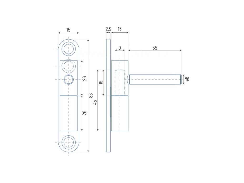 Šroubovací dveřní pant- Vnější průměr: 15 mm- Celková délka pantu: 83 mm- Závit: M8- Délka závitové části: 55 mm- Dvoudílná konstrukce: část přišroubovaná (s deskou) k rámu a část přišroubovaná do křídla dveří- Způsob montáže: přišroubovaná, není nutné hluboké frézování do dřeva- Určené použití: pro dřevo; dřevěné dveře a okna, také s polodrážkou- Nosnost: max. 40 kg při použití 2 pantů- Směr otevírání: univerzální (levý/pravý)- Povrchová úprava: žlutý pozink - Stabilní přenos zatížení mezi rámem a křídlem díky montážní desce- Nosnost 40kg / pár