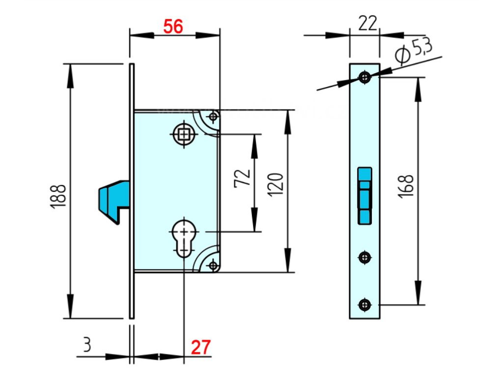 Zámek na posuvné brány Typ 1-30, hákový s protiplechem 72/30/56