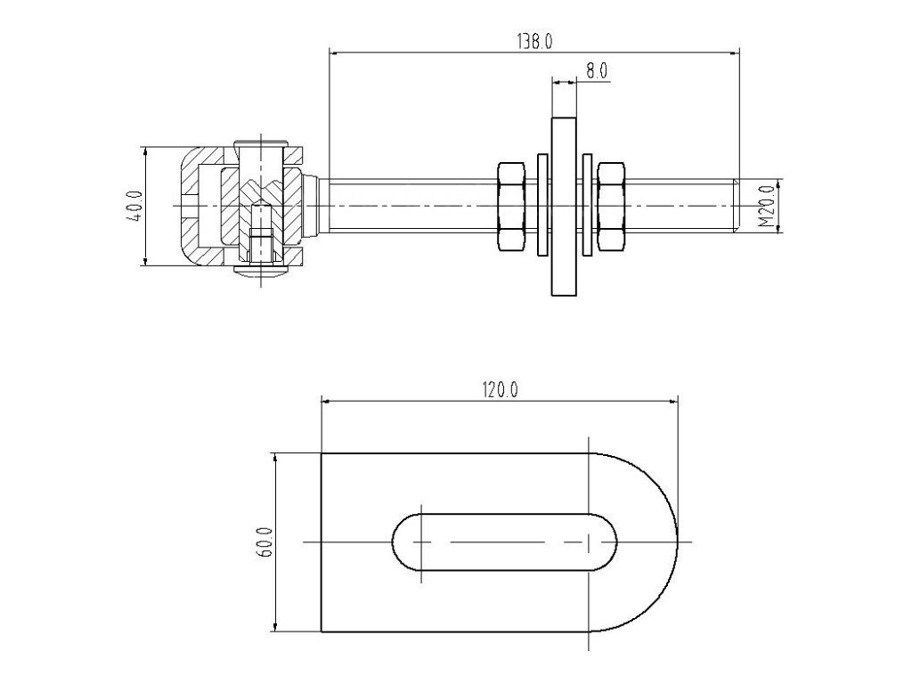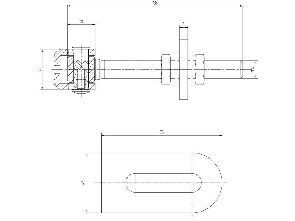 Závěs brány s regulací polohy varianty M12, M16 a M20, 180°, varná montážní deska